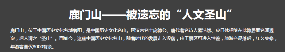 項目名稱:湖北襄陽鹿門山旅游度假區概念性規劃