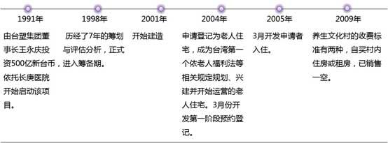 項目源起:臺灣“經(jīng)營之神”王永慶為紀(jì)念其父親王長庚所創(chuàng)辦長庚醫(yī)院。2004年,依托長庚醫(yī)院的醫(yī)療資源,臺塑集團建立了長庚養(yǎng)生文化村,成為面向“銀發(fā)一族”的集養(yǎng)生、醫(yī)療一體化經(jīng)營的項目。