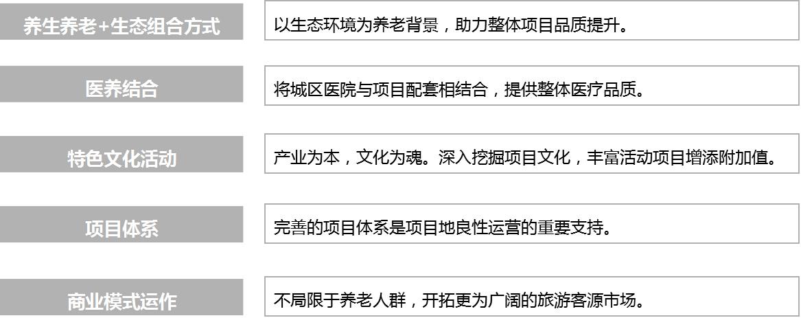 養(yǎng)生養(yǎng)老項目成功開發(fā)的關(guān)鍵因素主要包括五個方面: