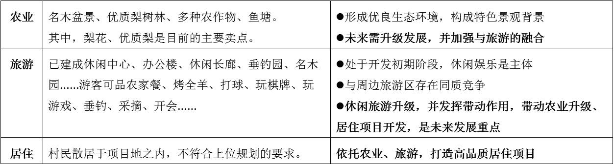 “農(nóng)業(yè)”、“旅游”發(fā)展已具備一定基礎(chǔ)。但有待提升,并帶動“居住”發(fā)展。