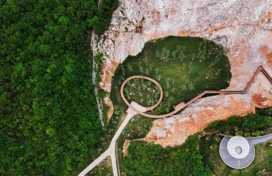 位于湯山國家旅游度假區(qū)內湯山山體南側,是一座廢棄的采石場礦坑,宕口遠看傷痕累累,走進卻氣勢恢宏——植物已經(jīng)悄然的從破碎的石縫中慢慢長出,與冷峻的石壁搭配成漂亮的肌理;巨大的采石場的尺度讓人覺得不可觸、不可及,但是熱血沸騰。